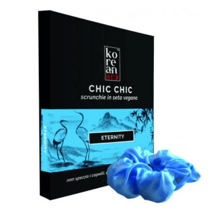 L Chouchou en soie vegan-eternity par Gentleaf c'est un élastique qui ne tire pas ou ne déchire pas les cheveux, mais les garde doucement collectés.