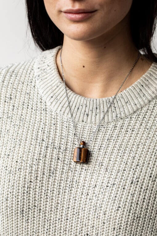 La Collana per Aromaterapia - Occhio di Tigre di Olfattiva è uno strumento di aromaterapia da indossare per portare con sè le proprietà degli oli essenziali in sinergia con le pietre in cui sono contenuti.