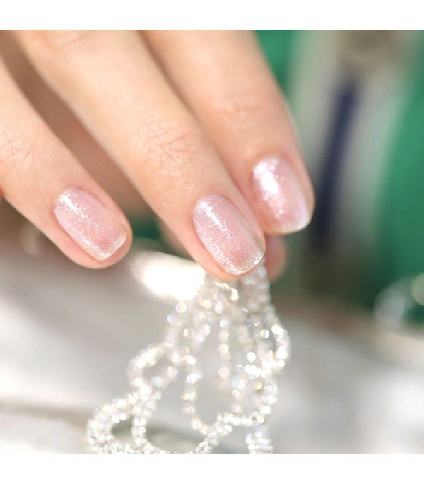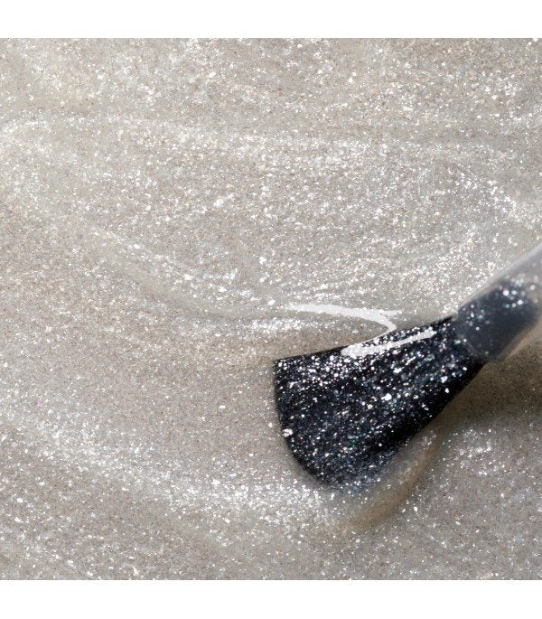 Lo Émail semi-permanent Diamant-Green Flash par Manucurist c'est une couleur argentée avec des paillettes qui évoque une galaxie transparente.