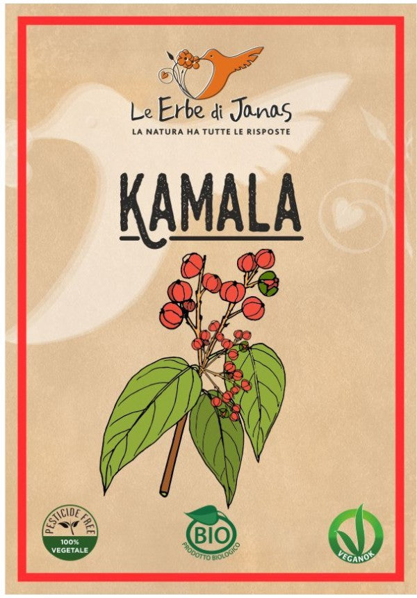 La Polvere di Kamala Le Erbe di Janas è un'Erba Indiana per Capelli dal potere tintorio molto elevato, ottima per correggere i toni dell'Hennè facendolo virare verso un rosso intenso.
