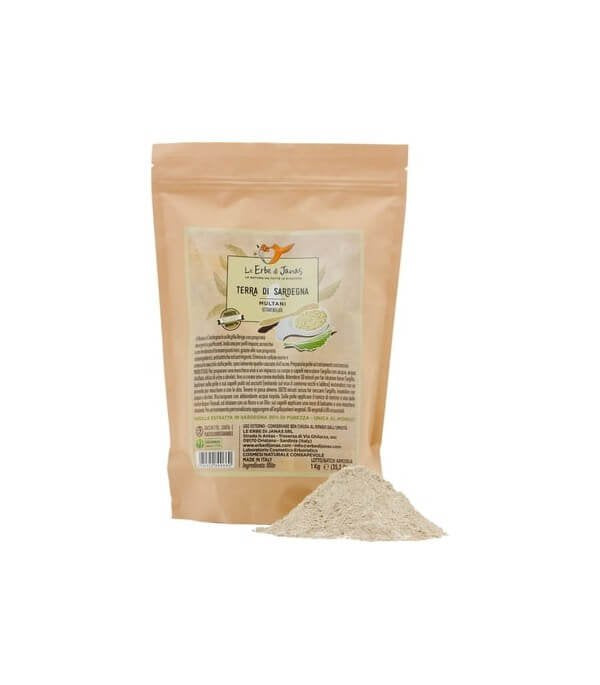 Multani 1 kg de la Sardaigne par Le erbe Di Janas c'est une argile nettoyante, utilisée depuis des siècles en Inde et connue sous le nom de Terre de Fuller. Il possède des propriétés purifiantes, qui éliminent les cellules mortes, et nettoyantes, laissant les pores de la peau respirer correctement. Indiqué pour le traitement de la peau acnéique et des points noirs.