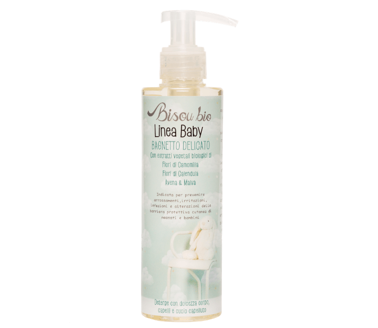 Mode d'emploi: Distribuer 2-3 bouchons dans l'eau du bain et de procéder à la purification. Après l'application de la Crème pour le corps Bébé Bio Bisou