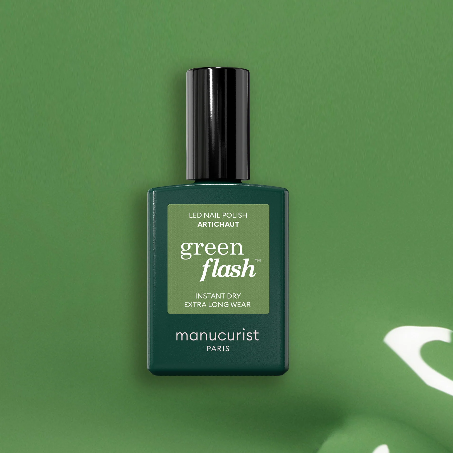 Lo Smalto Semipermanente Artichaut - Green Flash di Manucurist è un colore verde con sottotono giallo.