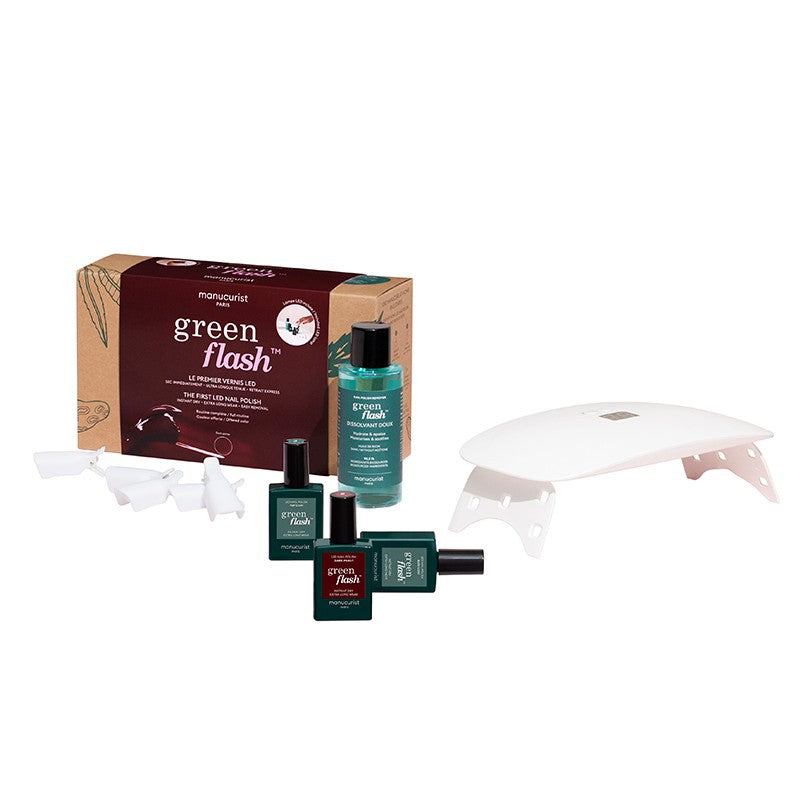 Le Kit complet Vernis à ongles semi-permanent Flash Vert Foncé par Manucurist il vous permet d'avoir en moins de 20 minutes une manucure impeccable et verte qui dure jusqu'à 10 jours.